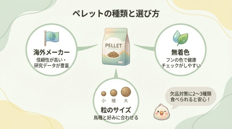 2〜3種類のペレットに慣れておくと安心!