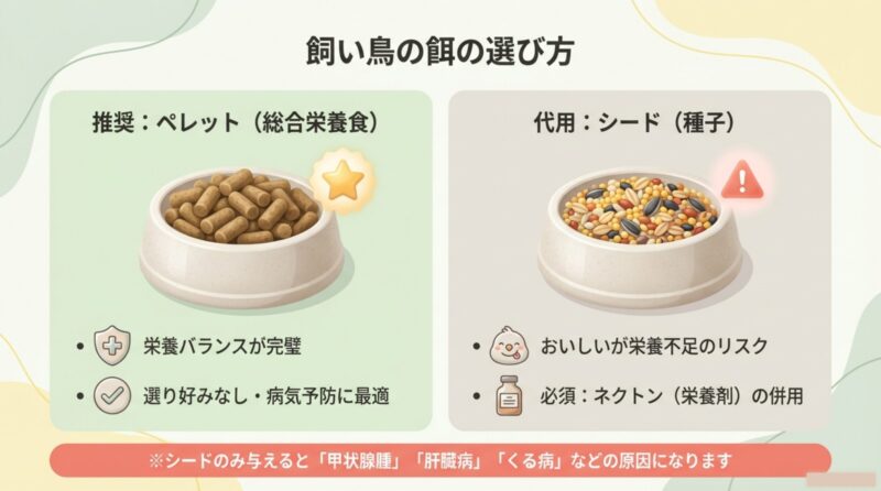 鳥の食事は、栄養バランスが大切です。