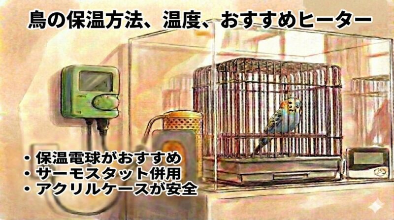 ポイントはシンプルで、保温は「鳥の状態に合わせる」ことです。